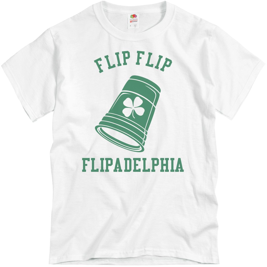 Flip Flip Flipadelphia! Get ready for your upcoming flip cup match or pub crawl with a hilarious t-shirt. Great for St Patricks Day pub crawls and bar hops.