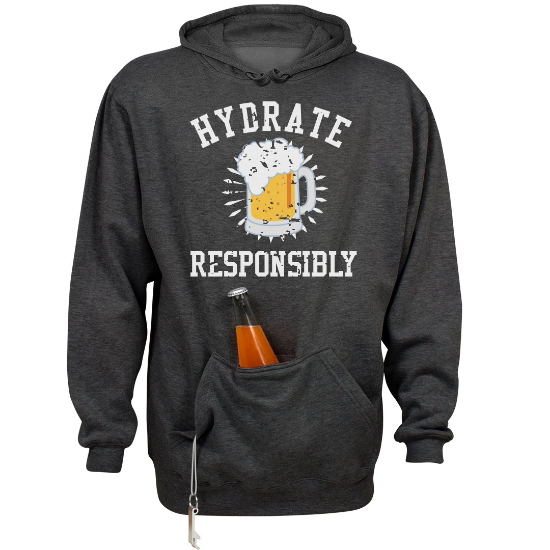 Finally, a hooded sweatshirt with a built-in neoprene pocket for beverages! This unique patented design from Huzu and J. America maintains the sleek look of a traditional hoodie, but packs more functionality than a Swiss Army knife. The insulated pocket has reinforced stitching that keeps your beverage sturdy whether you're playing corn hole or flipping burgers. Unlike traditional hoodies, the Huzu Velcro seal is great for storing cell phones, wallets, and other valuables that you need to keep secure and prevent from bouncing around or falling out. Also great for holding fly boxes for fishing, small backpacking and hunting equipment, diabetic meters and more.