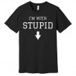 I'm with stupid! (arrow pointing down). Get it? This hilarious t-shirt is the ultimate gag gift for any guy. Snag this funny tee as a goofy present for your boyfriend for his birthday this year.