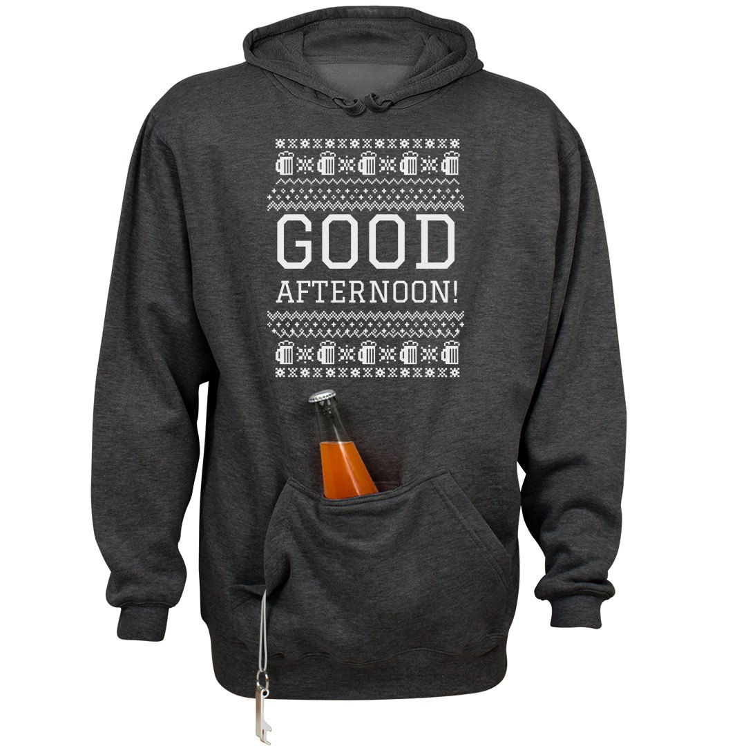 Finally, a hooded sweatshirt with a built-in neoprene pocket for beverages! This unique patented design from Huzu and J. America maintains the sleek look of a traditional hoodie, but packs more functionality than a Swiss Army knife. The insulated pocket has reinforced stitching that keeps your beverage sturdy whether you're playing corn hole or flipping burgers. Unlike traditional hoodies, the Huzu Velcro seal is great for storing cell phones, wallets, and other valuables that you need to keep secure and prevent from bouncing around or falling out. Also great for holding fly boxes for fishing, small backpacking and hunting equipment, diabetic meters and more.