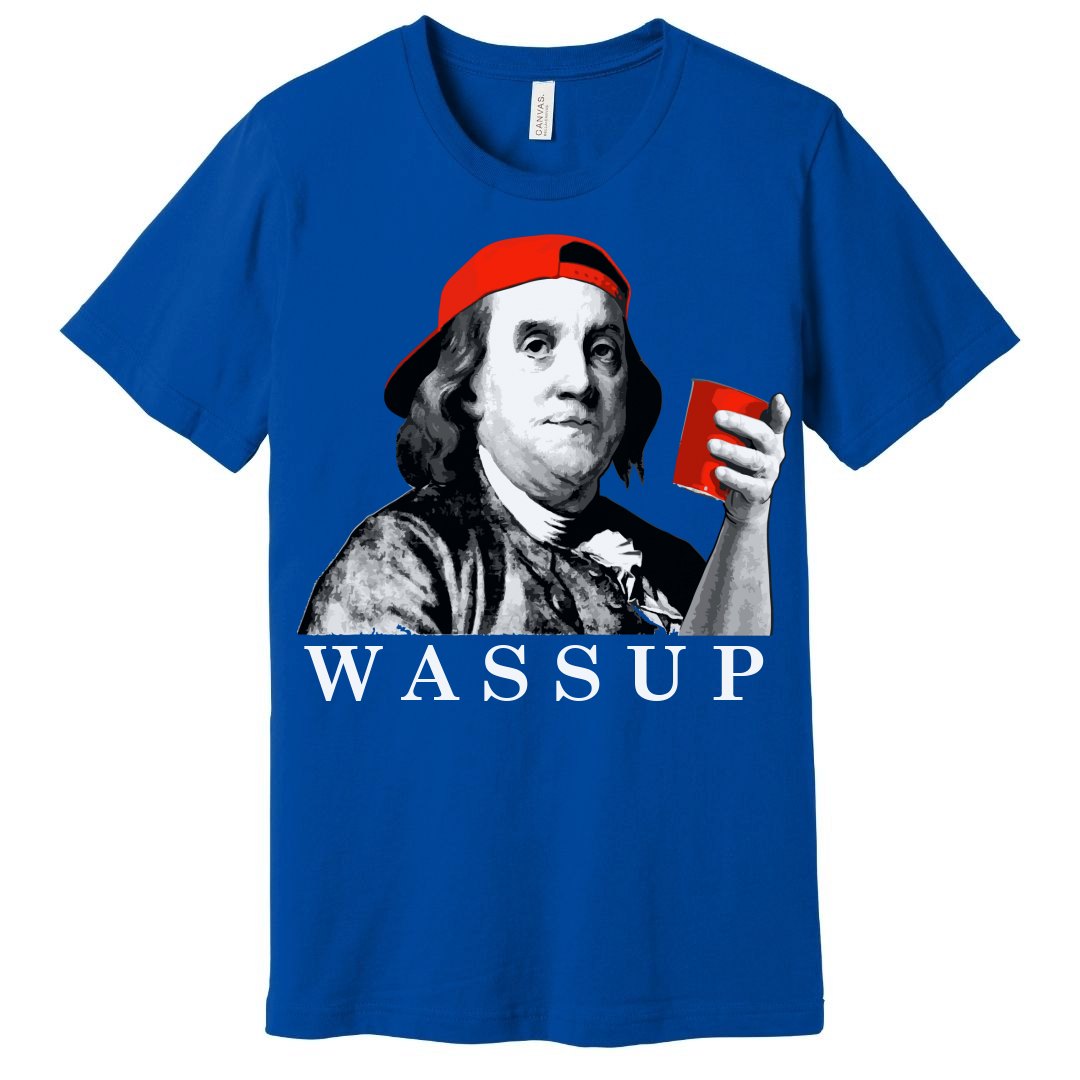 Ben Franklin the party animal. Celebrate this Fourth of July in style with this presidential party tee. A funny take on American history. This President obviously knew how to have a good time so grab your shutter shades sunglasses, red solo cup, hat, and rock out this holiday.