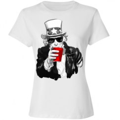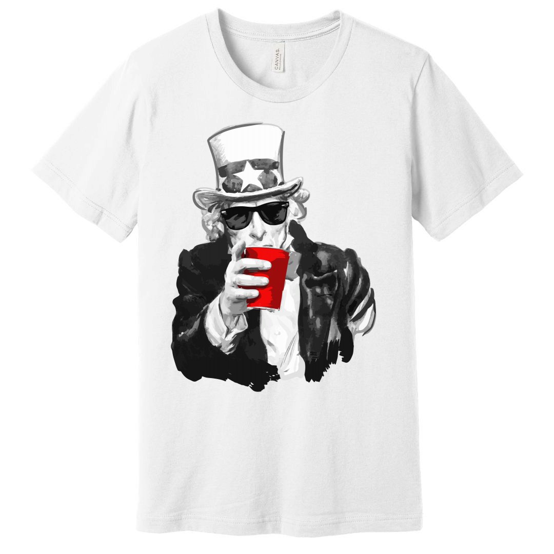 Uncle Sam the party animal. Celebrate this Fourth of July in style with this presidential party tee. A funny take on American history. This President obviously knew how to have a good time so grab your shutter shades sunglasses, red solo cup, hat, and rock out this holiday.
