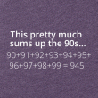 Yeah, I mean you can pretty much sum the 90s with a few Nirvana songs, a flannel shirt, some JNCO jeans, eventually some NSync I guess, and then of course you can also add up all the numbers and you'll get a sum of 945 which is frankly much more accurate and satisfying and fulfilling.