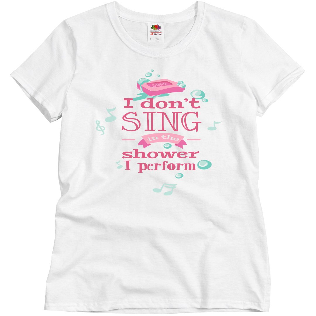 Beautify singing in the shower in a funny shirt